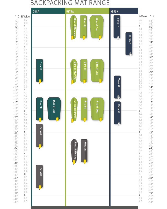ここでは【Ultra】【Dura】【Versa】のそれぞれ用途に特化させたバックパッキングマットのラインナップをご紹介します。